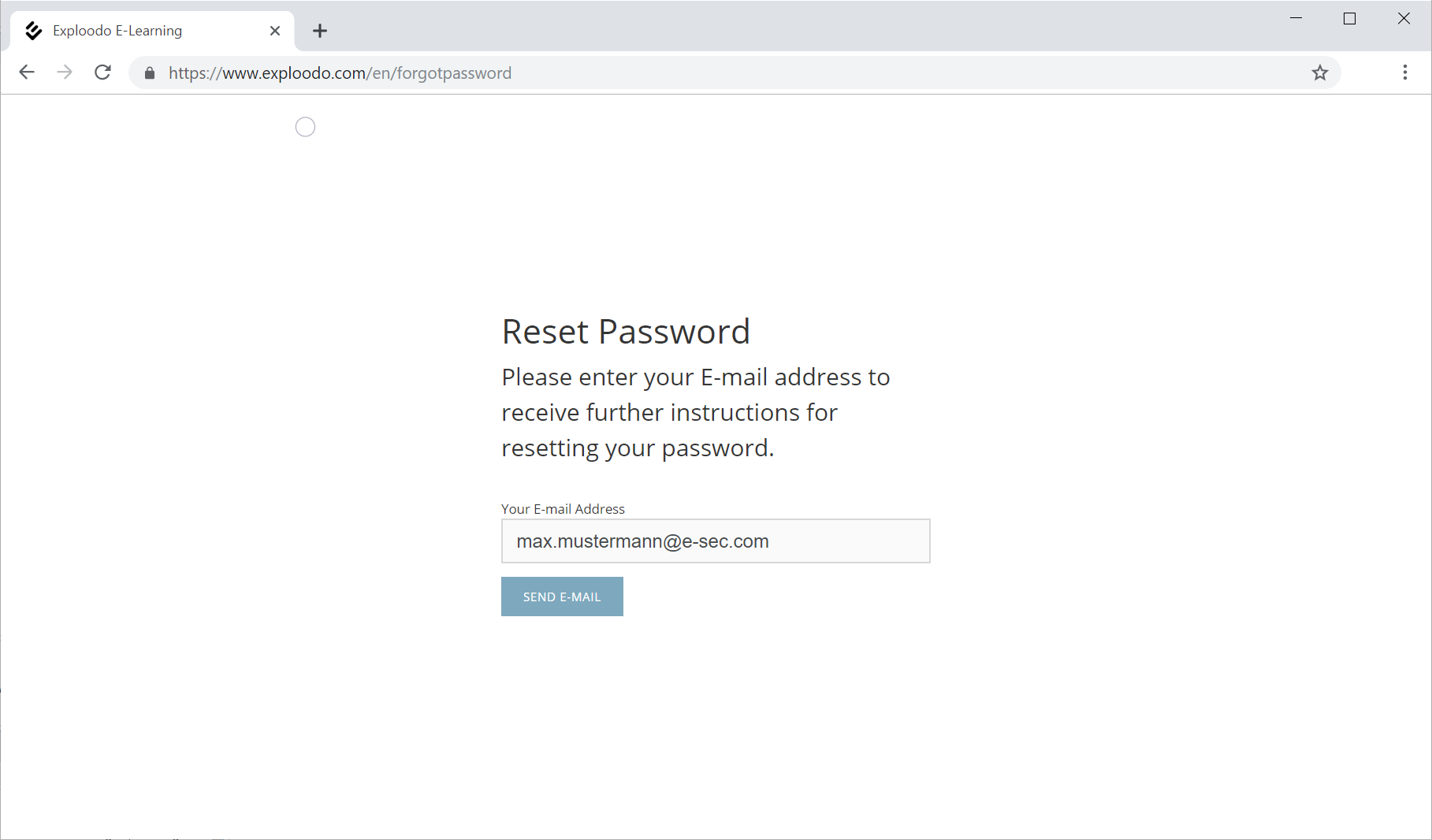 You will be asked to enter your e-mail address. Next, click on the button "Send E-Mail".
