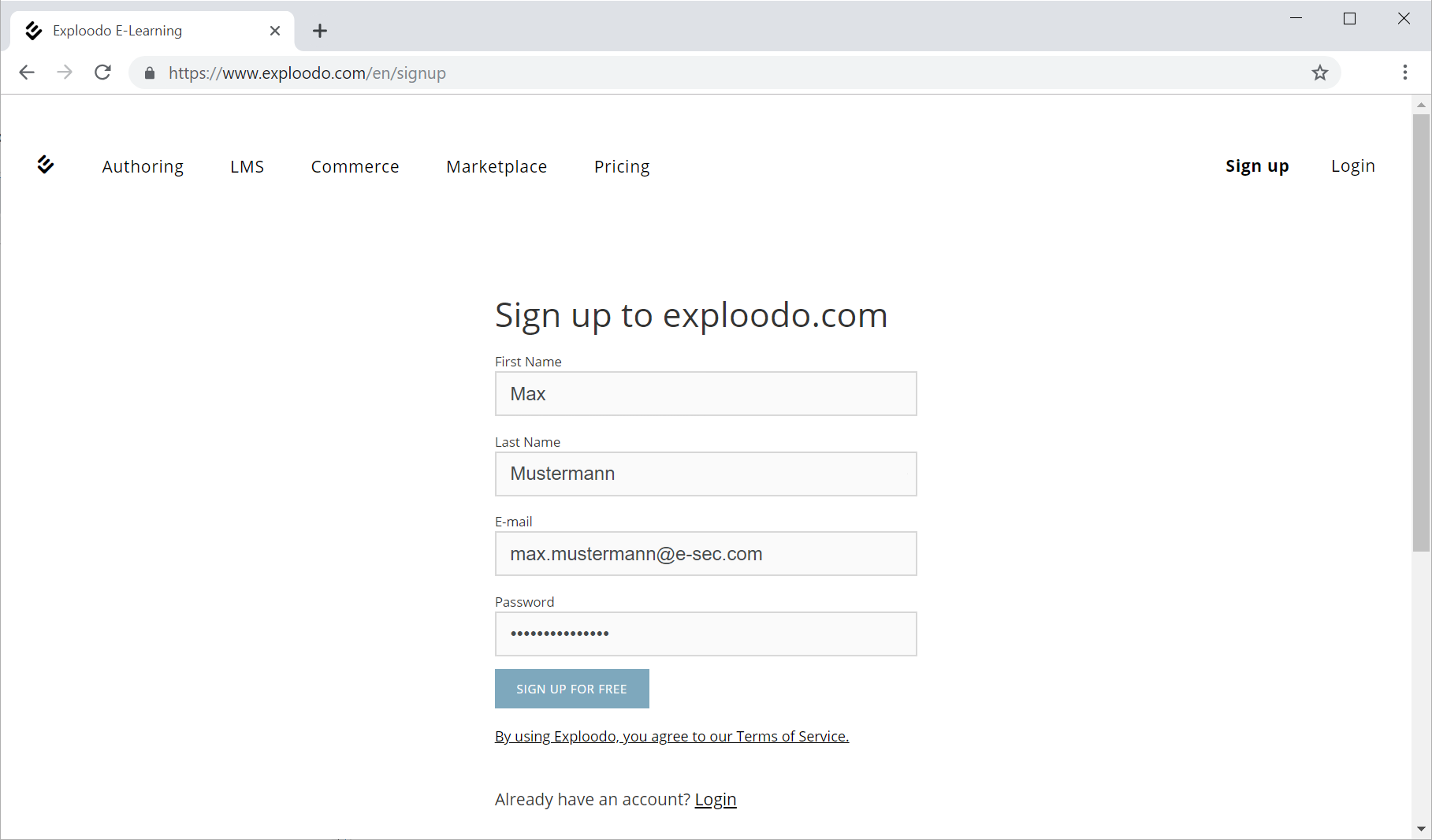 After signing up successfully, you can immediately try out the software for free (14-days trial) or create your own content (for further information see Getting Started). Now you can log into www.exploodo.com at any time using your e-mail address and password. To complete the sign-up process, an e-mail containing a confirmation link will be sent to your e-mail address.