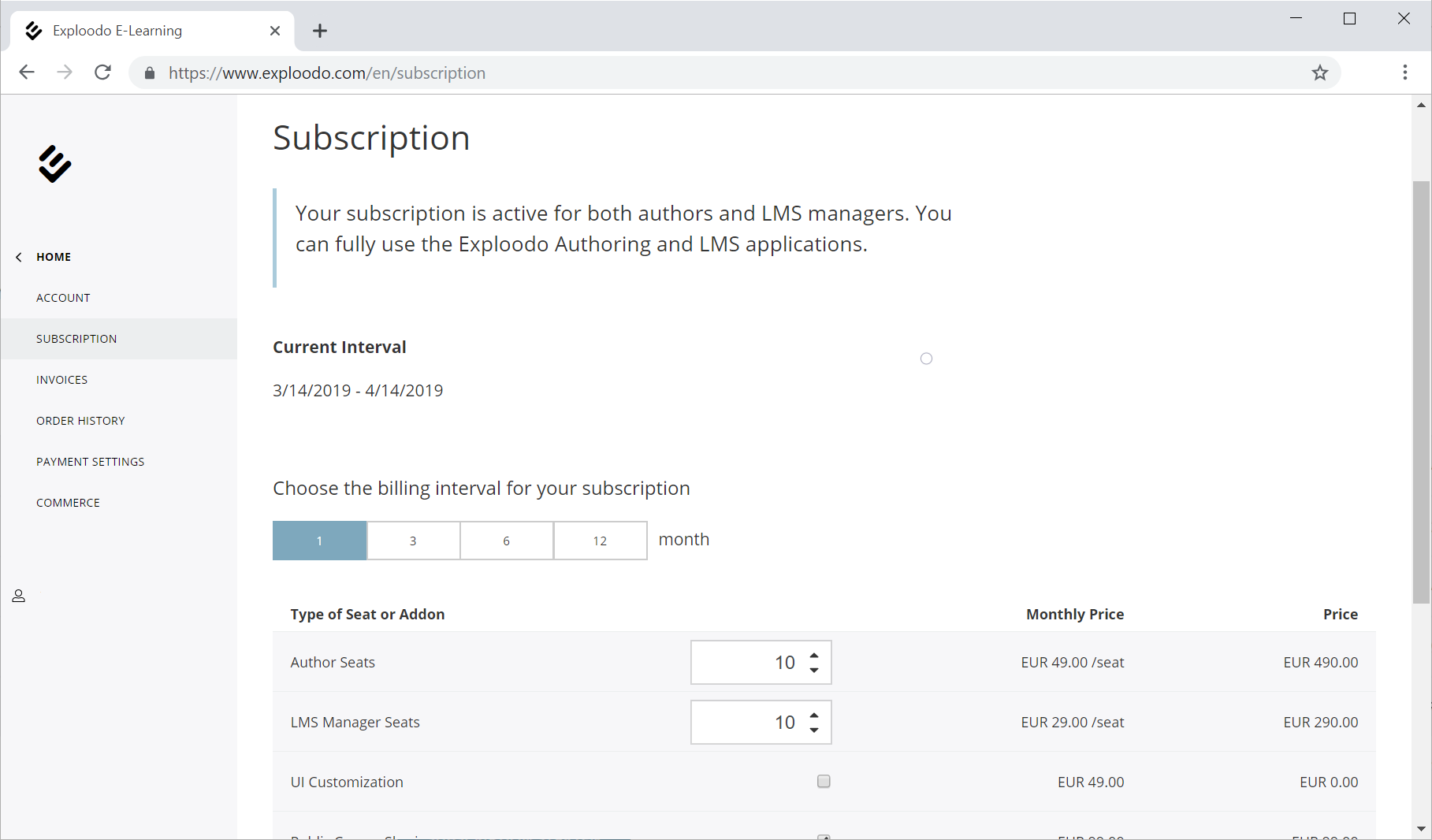 You can start or cancel subscriptions at any time. The changes you make happen in real time and purchased services can be used immediately. Payable fees are calculated on a daily basis. If you want to double-check any changes you have made, click on "Update Subscription".