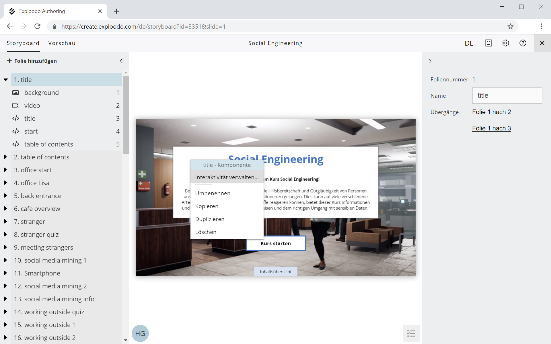 - Tipp: Der Name der Folie kann auch durch Doppelklick auf die Folie im linken Seitenmenü verändert werden.