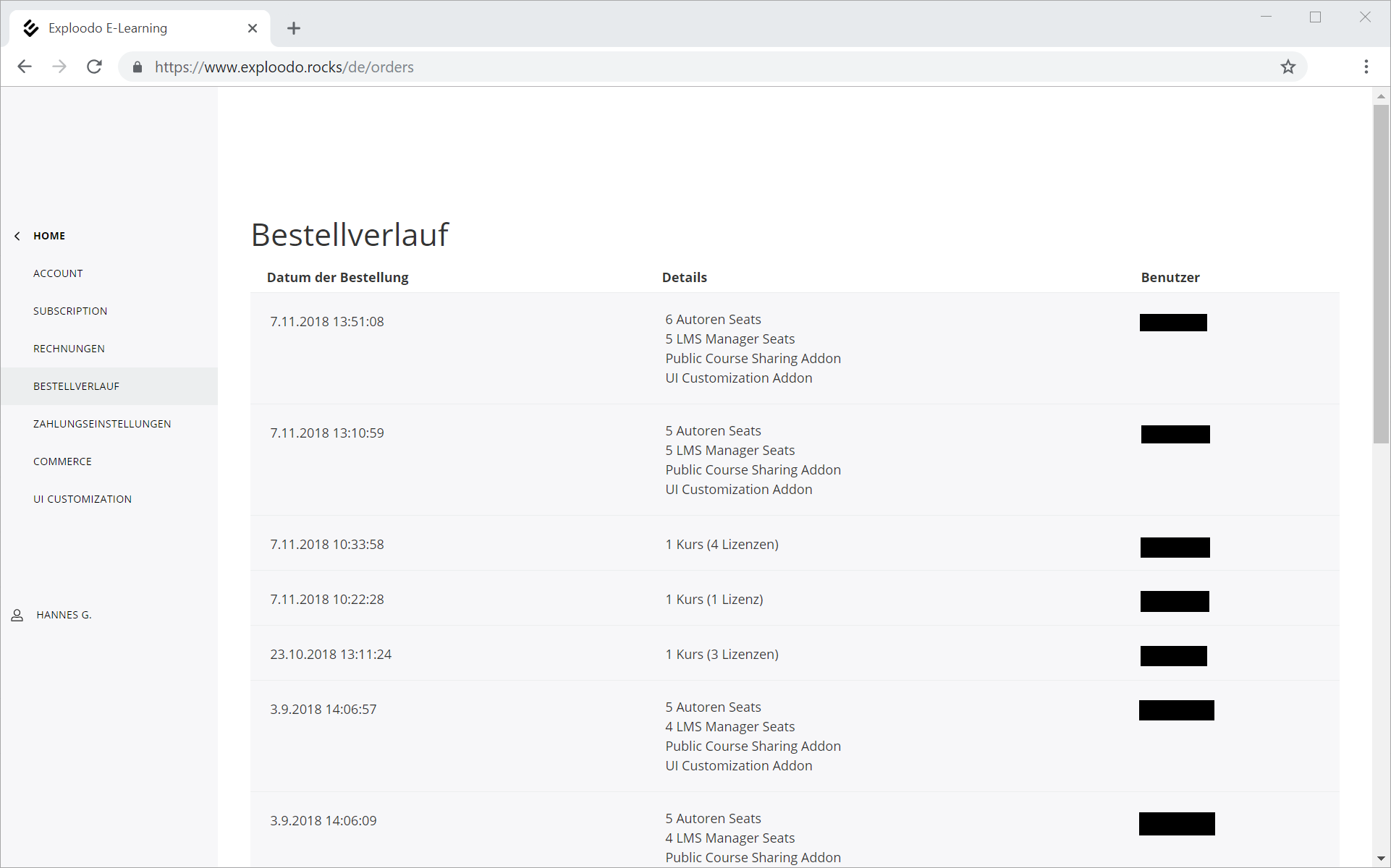Alle Bestellungen von Kursen, Abos, Add-Ons etc. werden mit einem Zeitstempel versehen und hinterlegt und können in Echtzeit eingesehen bzw. kontrolliert werden. Sollten mehrere Benutzer Admin-Rechte haben, kann jede Bestellung auch eindeutig einem Benutzer zugeordnet werden.