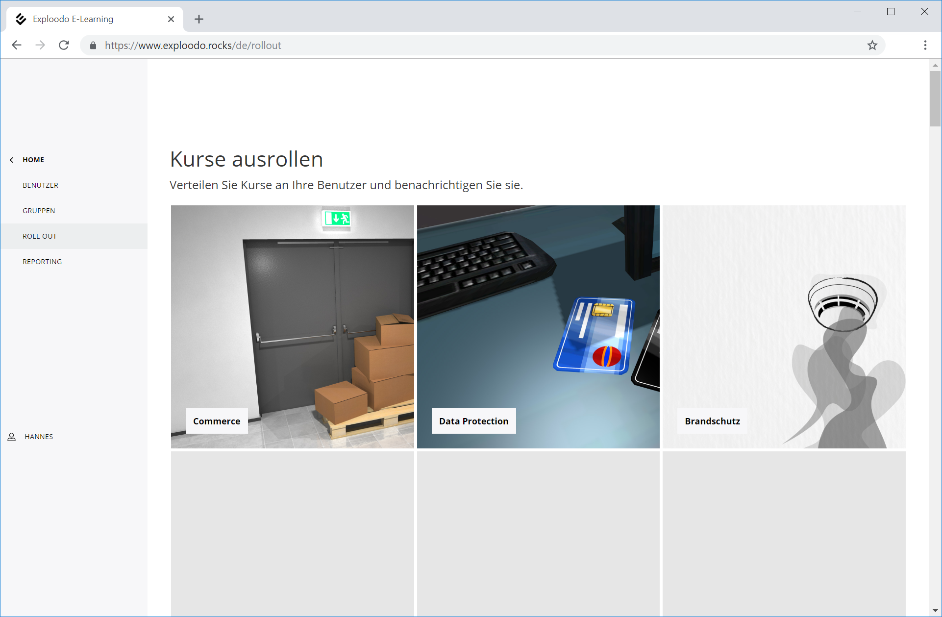 - Personalisierter Roll-Out: Der Kurs wird an zuvor im Exploodo LMS angelegte Benutzer ausgerollt, die den Kurs absolvieren sollen.